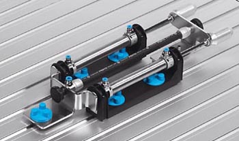 Durch die mechanische Kopplung eines pneumatischen Muskels mit einem doppeltwirkenden Zylinder kann der Muskel geführt werden. Über den Zylinder ist es auch möglich, den Muskel zu belasten.