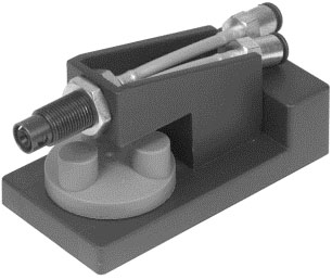 Der Ringstrahlsensor ist ein berührungsloser pneumatischer Signalgeber. Er wird am Eingang 1 mit Niederdruck versorgt. Wird der ständig ausströmende Luftstrom durch einen Gegenstand gestört, so entsteht am Ausgang 2 ein Niederdrucksignal.