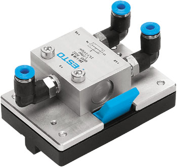 Das Zweidruckventil wird durch Zuschalten der Druckluft an den beiden Eingänge 1 nach Ausgang 2 durchgeschaltet (UND-Funktion). Werden beide Eingänge 1 mit unterschiedlichen Drücken beaufschlagt, gelangt der niedrigere Druck zum Ausgang.