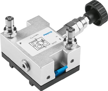 Das Ventil begrenzt den Druck an Anschluss P gegenüber dem Druck an T auf den eingestellten Wert.