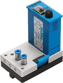 The time delay valve is actuated by a pneumatic signal at port 1 after a preset time delay has elapsed. It is returned to the normal position via return spring when the signal is removed. The time delay is infinitely adjustable by means of a regulating screw. The time delay is reset automatically within 200 ms.