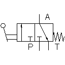 In normal position the connection P is closed and A to T opened. When manually actuated T is shut off and P to A opened.
