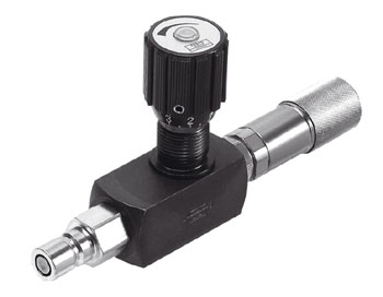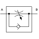 The setting of the One-way flow control valve is set by means of a rotary knob. A check valve (see check valve) is located parallel to the throttle valve. Please note that by the rotary knob no absolute resistance value can be set. This means that, in reality, different throttle valves can generate different resistance values despite identical settings.
