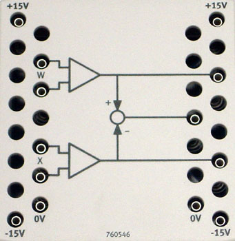 The differential amplifier is a closed-loop control technology component. An output signal/potential is generated at output 3, which corresponds to the difference between the two input signals/potentials at inputs 1 (w) and 2 (x). In the field of closed-loop control technology, the differential amplifier is used to determine deviation. In order to keep circuit wiring as straightforward as possible, required earthing (0 V) is not led out as a terminal, but rather wired internally.